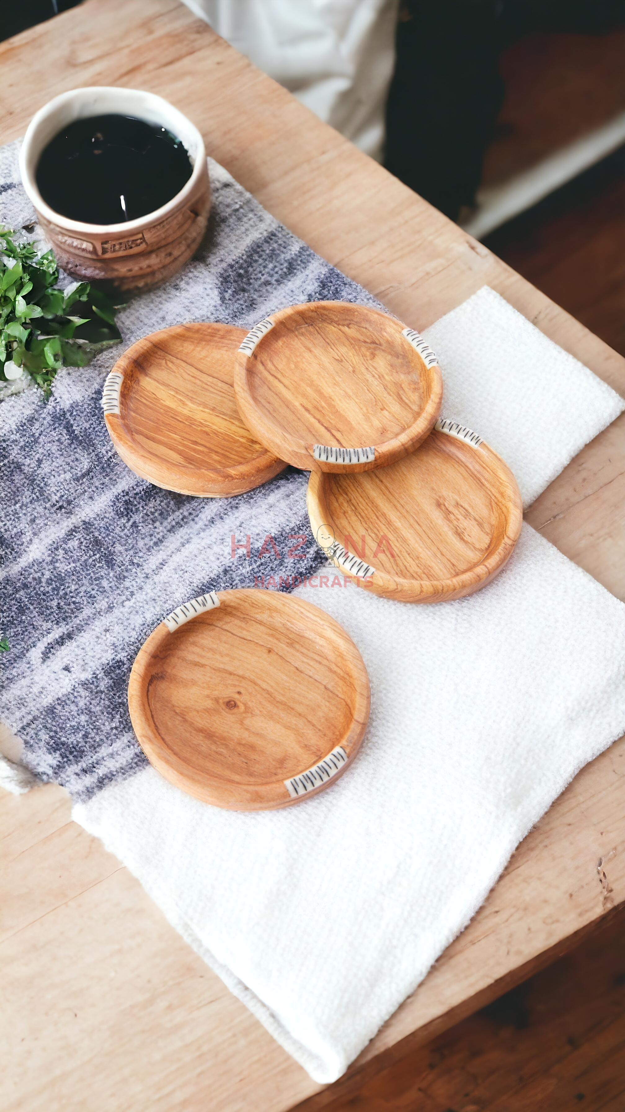Set of 4 Sunken coasters with bone inlay