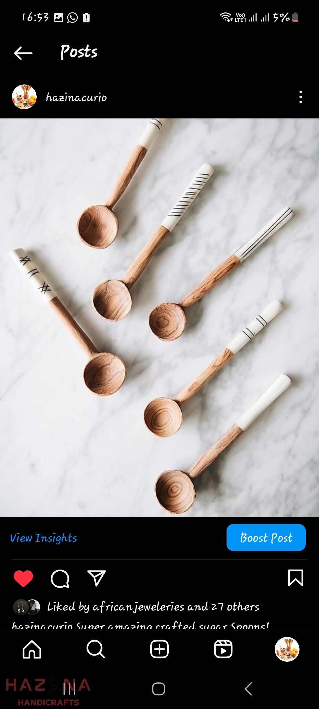 Hand carved wooden sugar spoons by artisans in Kenya. Each is made from ethically sourced wild olive wood, known for its exquisite texture and grains.