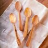 Hand carved wooden coffee spoons by artisans in Kenya. Each is made from ethically sourced wild olive wood, known for its exquisite texture and grains.