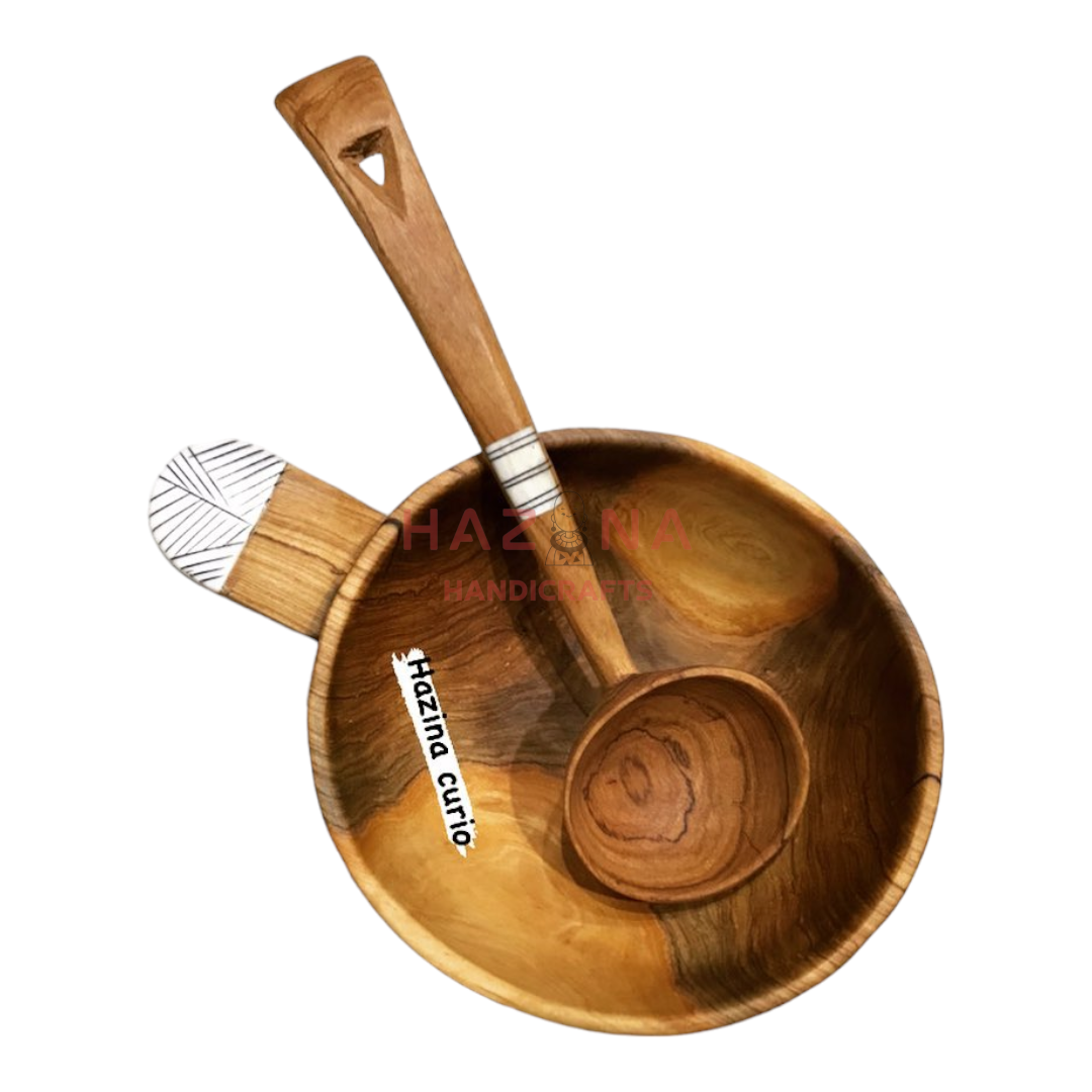 Hand carved wooden bowls by artisans in Kenya. Each is made from ethically sourced wild olive wood, known for its exquisite texture and grains.