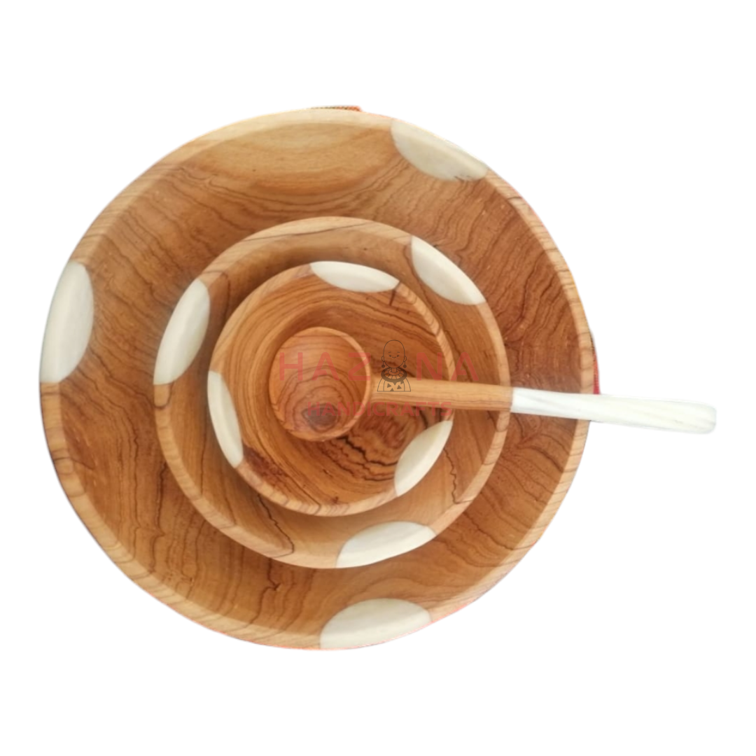 Hand carved wooden bowls by artisans in Kenya. Each is made from ethically sourced wild olive wood, known for its exquisite texture and grains.