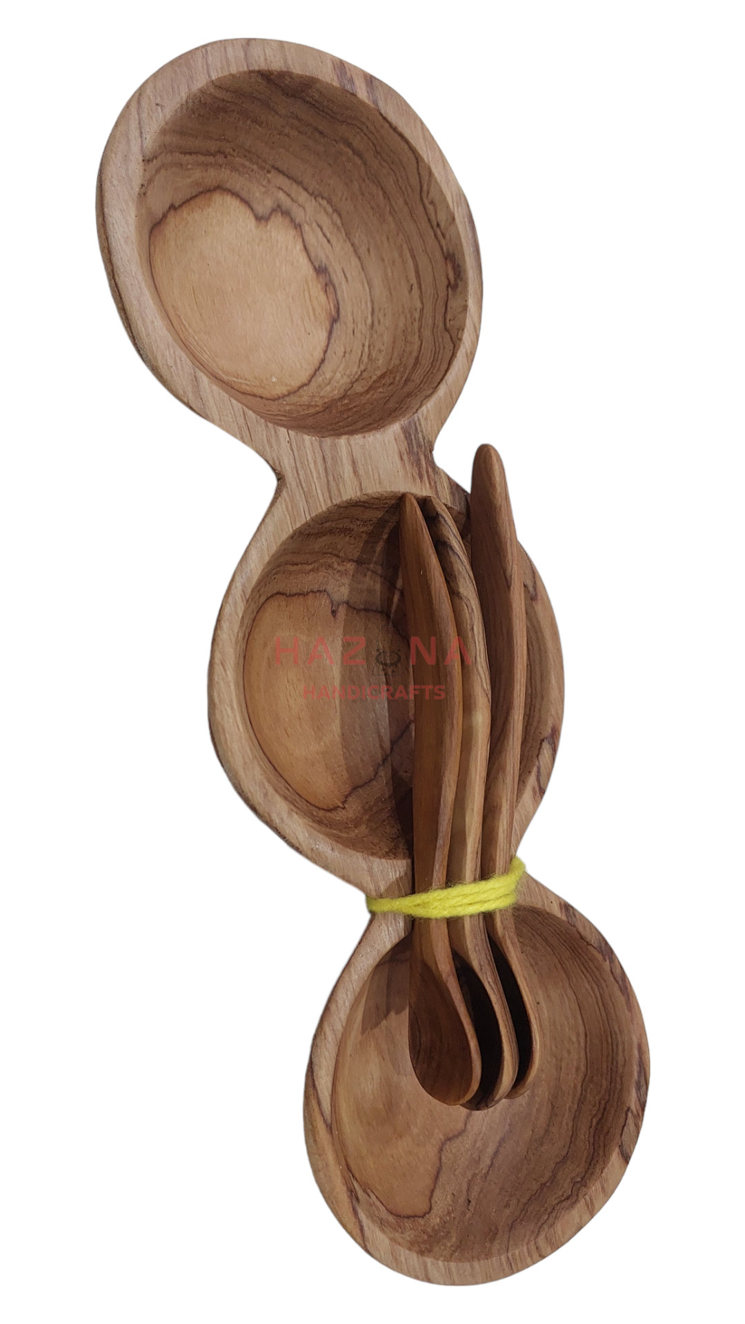 Hand carved wooden bowl by artisans in Kenya. Each is made from ethically sourced wild olive wood, known for its exquisite texture and grains.